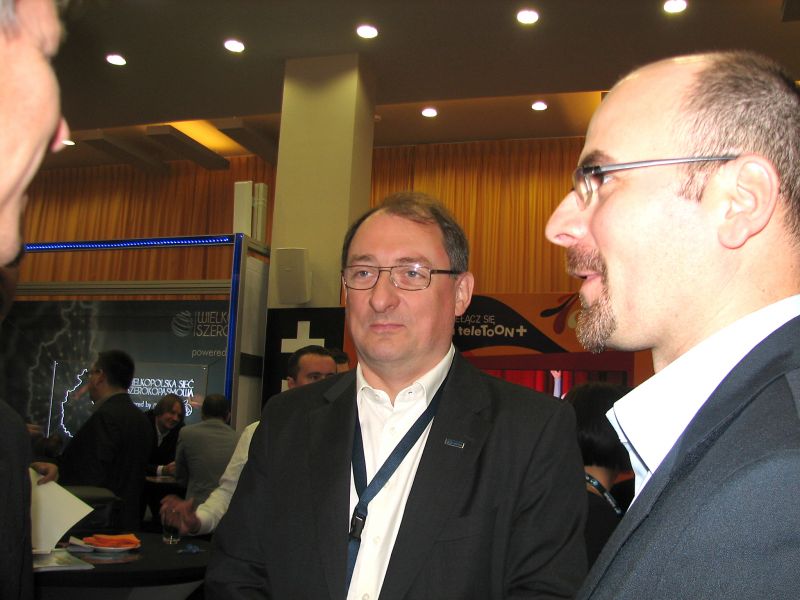 Janusz Kosiński-prezes INEA miał dobry humor podczas rozmowy z Anną Streżyńską - prezesem UKiE